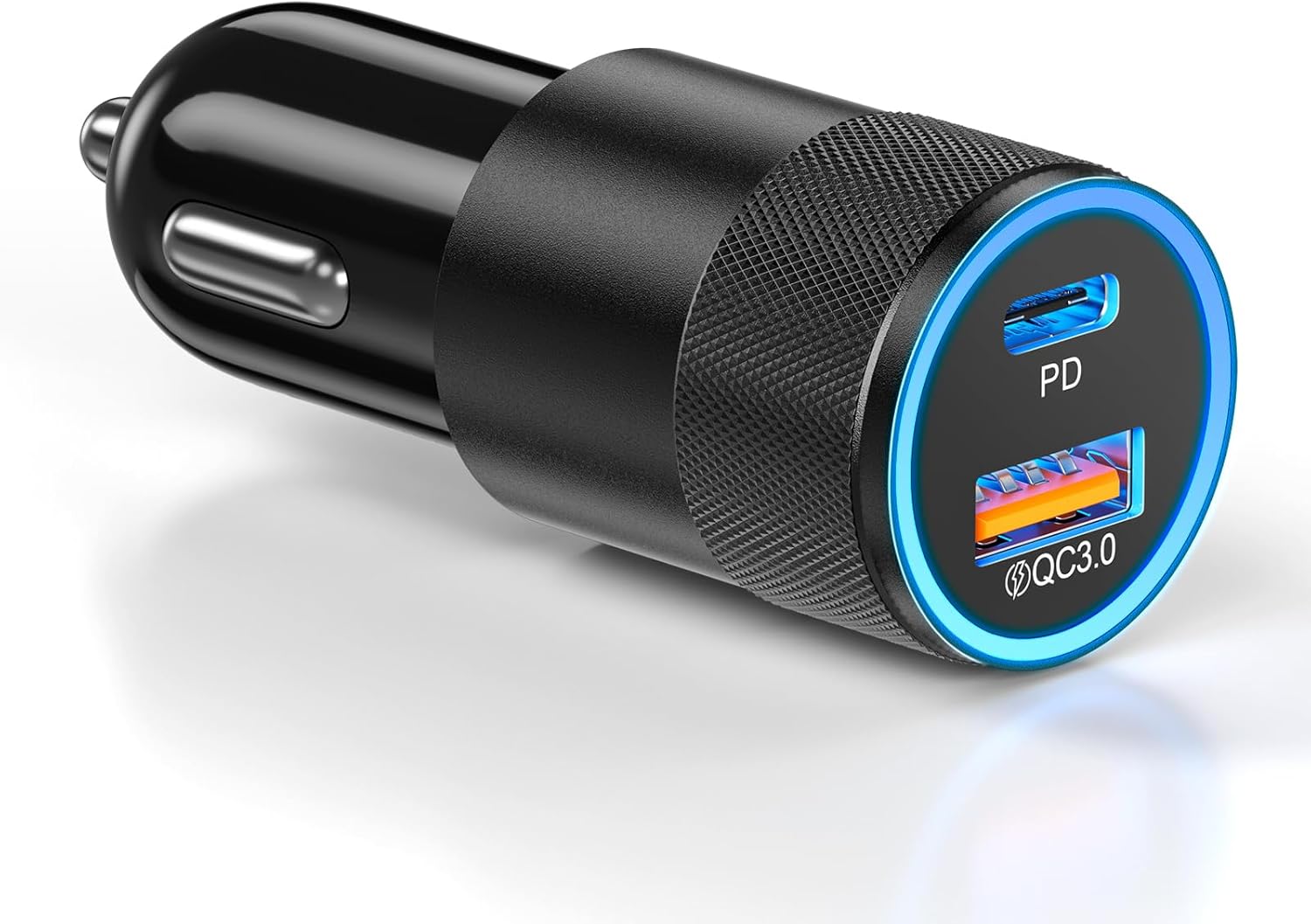 - 【Dual Port Car Charger】Designed with dual ports independent PD and QC 3.0 fast charging protocols, our 38W USB-C (PD 3.0 20W Max) and USB-A (QC 3.0 18W Max) 12V car charger can support fast charging 2 devices simultaneously, enable you fast charge for Samsung and Google Pixel Phones together.